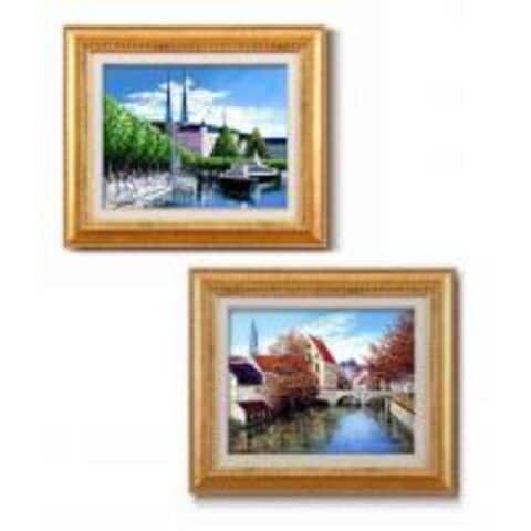 | 繊細な色使いで静かに流れる風景画をリアルに描いた本物の油絵額です。贅沢感ある金のフレームにセットしました。 |