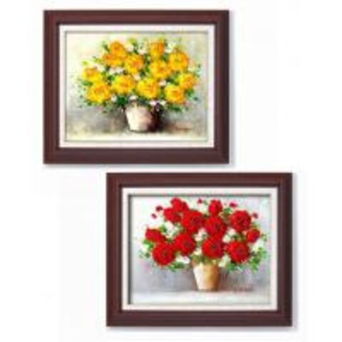 | 豪華なバラを落ち着きのあるフレームに入れました。作者が一品一品心をこめて描きあげた肉筆画です。黄色いバラには開運力・金運、赤いバラには愛情運・発展運という、風水の意味を込めて描かれています。 |