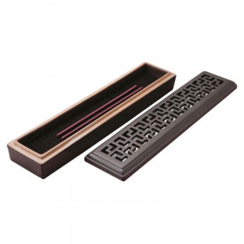 | 寝かせて使う線香皿。線香を寝かせて使うので、線香が倒れる心配がありません。香炉灰が不要な為、灰が飛び散りません。仏壇だけでなく、アロマ線香にも使用できます。 |