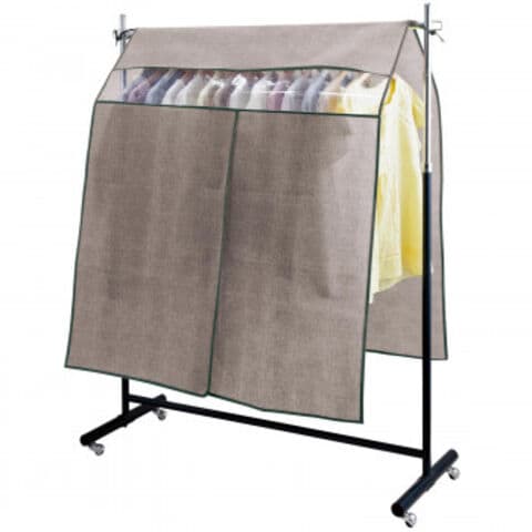 | ハンガーラックをホコリからまるごとカバー!中身が見える透明窓付き。センタースリット付きで衣服の出し入れがしやすく、ラックに固定できるひも付き(2か所)。背面内側には、防虫剤が入るポケット付き。 |