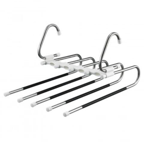 | 収納スペースをより有効活用できる、縦・横2way仕様の連結式スラックスハンガー。1つのハンガーでスラックス5着収納可能。滑り止め(EVA)付のバーで服の落下を防止。フックも折りたためる仕様なので出張や旅行時の持ち運びにも便利。可動式のバーのため取り出しがスムーズ。 |