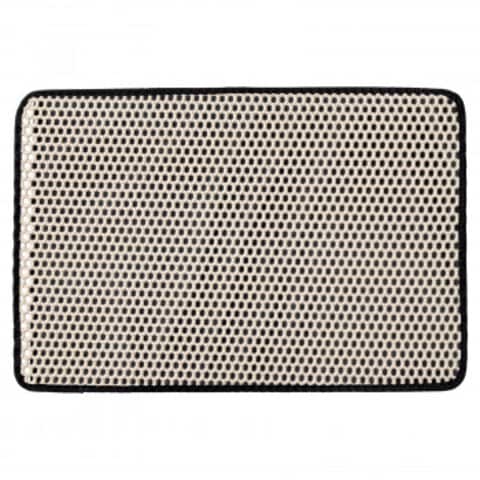 猫砂の飛び散りを防ぐ2重構造で、たまった猫砂を戻しやすい。内側撥水加工で水分を下に通しにくい。裏面滑り止め付き。
