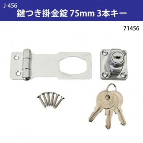 J-456 鍵つき掛金錠 75mm 3本キー 71456