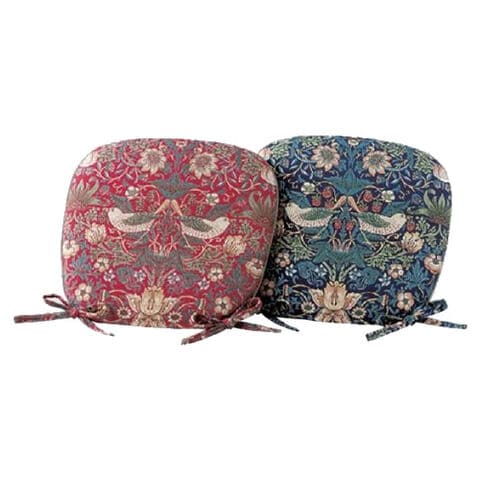 川島織物セルコン モリスデザインスタジオ いちご泥棒 ダイニングシートクッション 45×43Vcm LN1710 ブルー