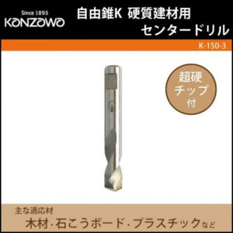 | 自由錐K 硬質建材用(品番K-150)に標準で付属している超硬チップ付きのセンタードリルです。 |
