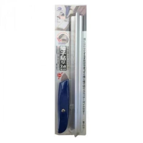 | 障子紙専用カッターとカッターガイドのセット。カッターは丸刃なので濡れた障子紙もスムーズにカットできます。 |