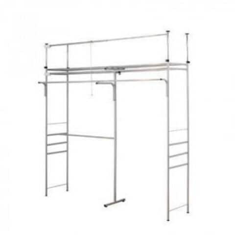 | 縦にも横にも伸縮OK!!設置場所を選ばない便利なハンガーラックです。天井面の突っ張りパイプは前後それぞれ別に伸縮するので、下がり天井(梁)など、前後に段差があってもしっかり設置出来ます。さらに複雑な天井構造では、カーテンレールパイプを取り外す事で対応。前面カーテン付なのでホコリを寄せ付けず壁面スッキリ目隠し収納。 |