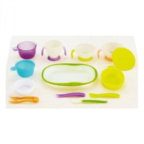 | セット内容 | ■離乳食調理器 すり皿・ミニざる・調理ボウル・ヌードルカッター ■食器 ランチプレートセット(大・小 各1)・ご飯茶碗・深皿・ミルクカップ・フィーディングスプーン・スプーン・フォーク・レンジ用フタ ■取扱説明書 |