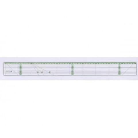 | 背景に色をつけることで、目盛や数字の入っている箇所がひと目で分かり、濃い色の布地や柄物の布地の上でもより見やすくなりました。また、定規の端の目盛の背景「カラーライン」は、縫いしろ幅にあわせた7mmなので、縫いしろをとる作業も楽にできます。製図、型紙作り、キルティングライン、印つけなどペンを使っての作業に最適なすっきり見やすい平行線&角度線が入ったシンプルな定規です。 |
