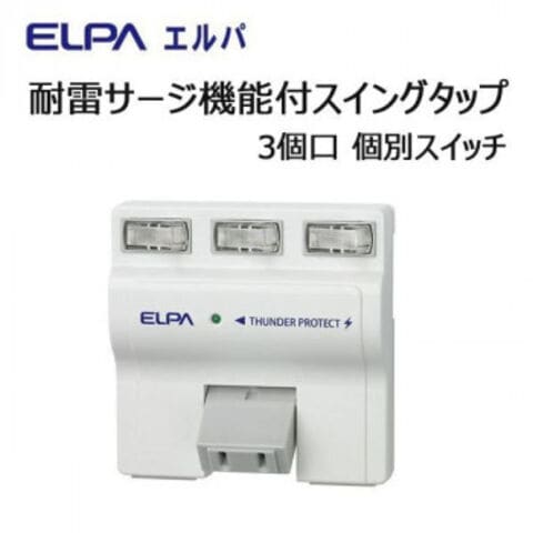 ELPA 耐雷サージ機能付スイングタップ 3個口 個別スイッチ A-S500B(W)
