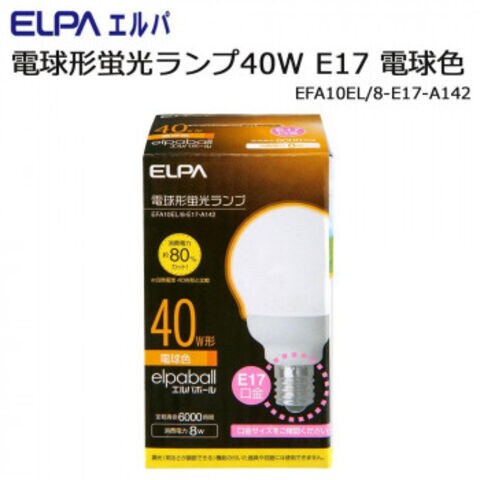 ELPA 電球形蛍光ランプ40W E17 電球色 EFA10EL/8-E17-A142