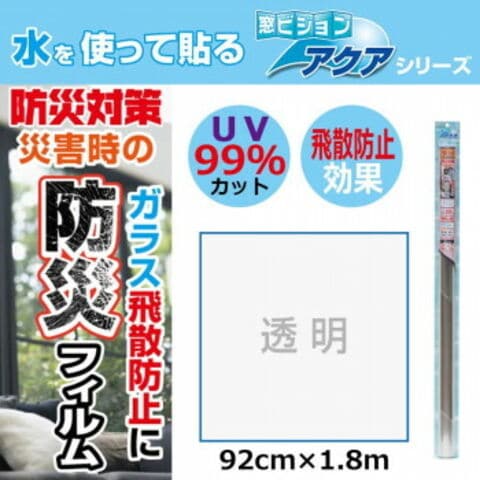 菊池襖紙工場 窓ビジョンアクア 飛散防止 防災フィルム 92cm×1.8m 透明・HF-J01