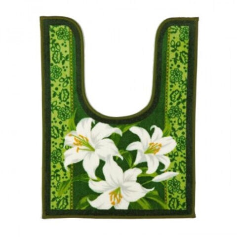 ユリ柄 サイドロングトイレマット クラシックリリー グリーン 80×60cm XA-2090