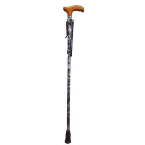 ラクーンステッキ(楽運素敵) 折りたたみ ソフトタイプ ブルー花柄・OMST16-PP-Z