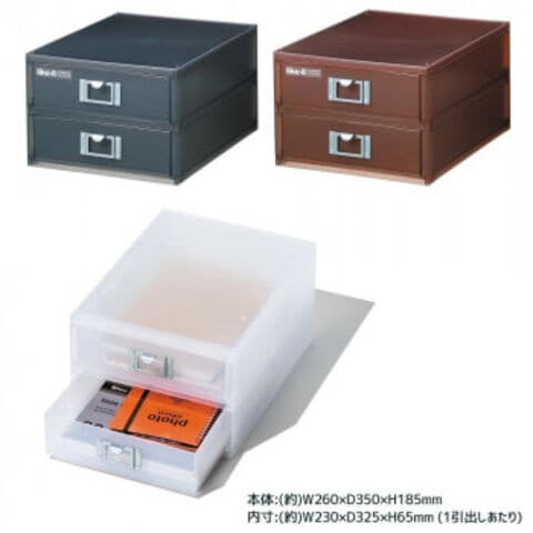 | サイズ | 本体:(約)W260×D350×H185mm、内寸:(約)W230×D325×H65mm (1引出しあたり) 個装サイズ:35×26×18.5cm |