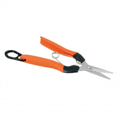 | 野菜・果実の収穫や摘果に。細かな作業に最適な直刃です。手への衝撃を吸収クッション機能により、切断時におきる衝撃を大幅に軽減します。羽根付ストッパーではずしやすい。 |
