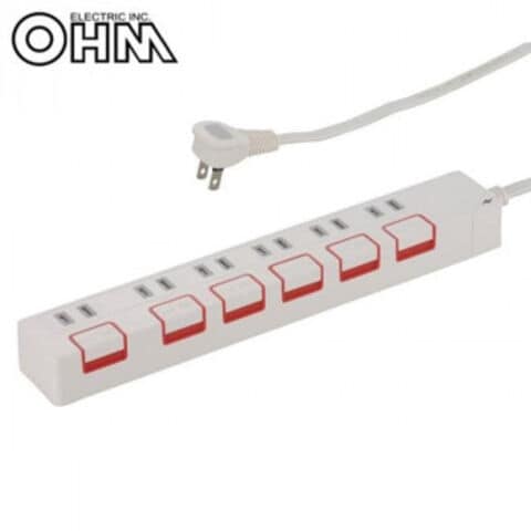 OHM 雷ガード&個別押しボタンスイッチ付き 節電タップ 6個口 1.5m HS-K1189W