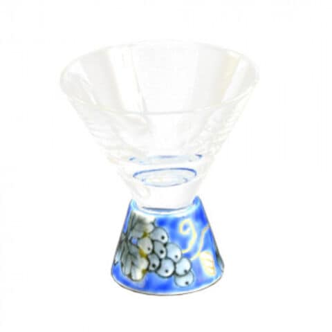 有田焼 福泉窯 有田浪漫グラス SAKE GLASS 台形 染錦葡萄 ブルー