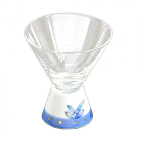 | ガラスの透明性と有田焼の美しさが結びついたグラス。美しい絵柄です。 ※脚部の絵柄や濃淡の風合いは異なる場合がございます。 |