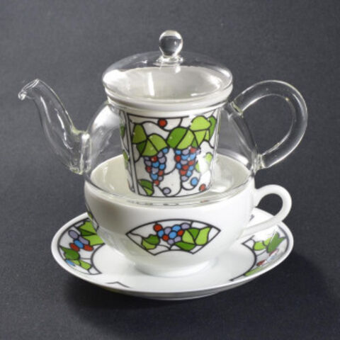 | 1人用ティーポットとティーカップがセットで、カップとポットが重なる形状が特徴の「ティーフォーワン」。ガラスのティーポットには陶磁器の茶こしをセットしました。ガラスの透明性と陶磁器のあざやかな絵柄が、上品でおだやかな時間を演出します。おもてなしやギフトにも最適☆ |