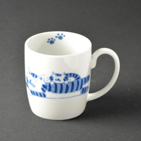 有田焼 ねこのマグカップ 眠りねこ(青)
