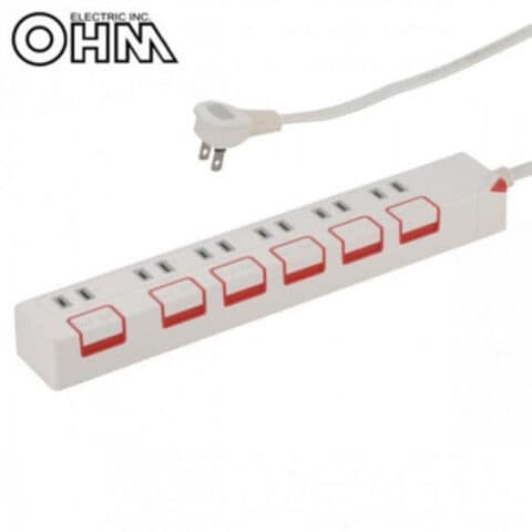 OHM 押しボタンスイッチ付き 節電タップ 6個口 1.5m HS-T1179W