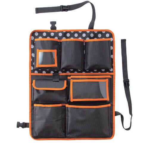 自動車のシートの背面に取り付けて使用するポケットです。ドライブなどに重宝します。