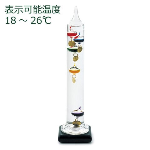 | カラフルなボールが浮き沈みして温度を示すユニークな温度計にコースターライトをセット。赤、青、緑の光がオーロラのように輝きます。 |