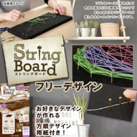 | セット内容 | 無地ベース×1枚 色糸×6色(赤、黄、緑、薄オレンジ、薄紫、水色) 釘(真鍮)×約80本 トレース用紙×1枚 方眼デザイン用紙(説明書兼用)×1枚 クリアケース×1個 |
