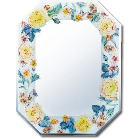 シンプルで使い勝手が良い八角のミラーに、透明感ある水彩画の花や風に揺れる野花をアレンジ。繊細な色使いが優しく空間を飾ります。 |