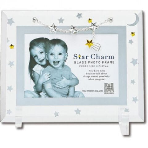 | 揺れる星のチャームと、フレーム表面に貼った黄色の星型ラインストーンがポイントのフォトフレームです。お子様のチャーミングな写真を飾って、健やかな成長を見守ってください♪ |