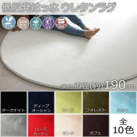 低反発はっ水ウレタンラグ 円形 190cmR スノー「GSCD701099」