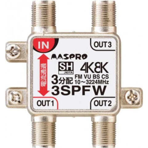 マスプロ電工 4K・8K衛星放送(3224MHz)対応 1端子電流通過型 3分配器 屋内用 3SPFW-P