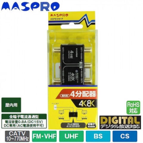 マスプロ電工 4K・8K衛星放送(3224MHz)対応 全端子電流通過型 4分配器 屋内用 4SPEDW-P