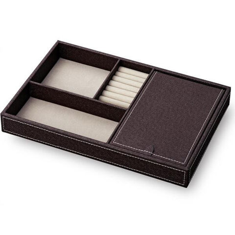 | 小物入れの数が多いので、指輪等アクセサリーからスマートフォンまで様々な物を収納する事ができる、フェイクレザーのトレーです。 |