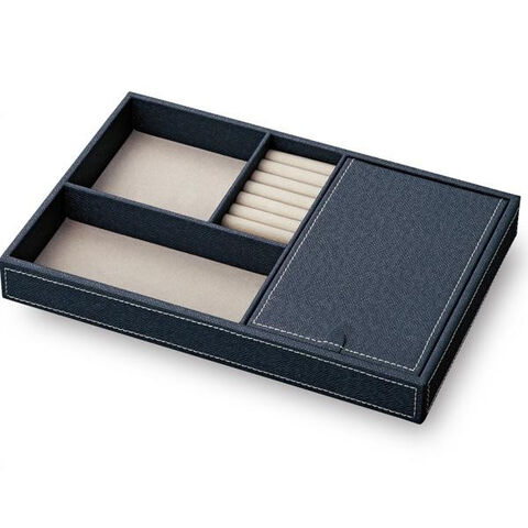 | 小物入れの数が多いので、指輪等アクセサリーからスマートフォンまで様々な物を収納する事ができる、フェイクレザーのトレーです。 |