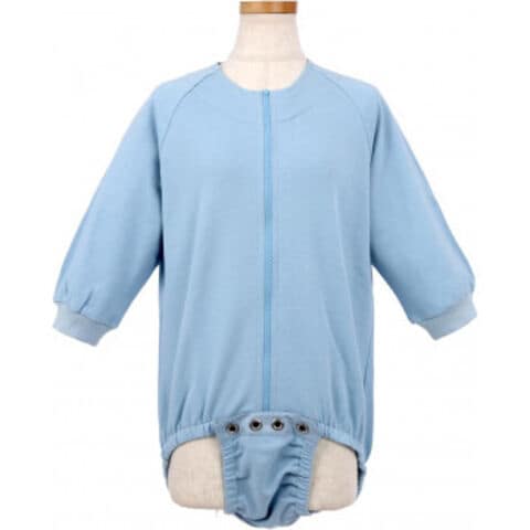 | 胸元から下へ向かってファスナーを締める構造です。ファスナーつまみを覆うアイデアホックを股部分に配置。普段着としてご使用いただける素材とデザイン。動きやすい五分袖です。 ご利用者本人や他のご利用者の生命、または身体が危険にさらされる場合のみご使用ください。 また、ご本人・ご親族等の同意の上、正しくお使いください。 【洗濯表示】 洗濯:40度までのお湯か水で弱洗い アイロン:中 ドライ:× 脱水:弱く ※ホックおよびファスナーは必ず閉じる。 ※塩素系の洗剤および漂白剤はご使用にならないでください。 ※タンブラー乾燥はお避けください。 |
