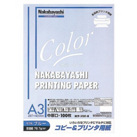 ナカバヤシ コピー&プリンタ用紙 カラータイプ A3サイズ 100枚 ブルー HCP-3101-B