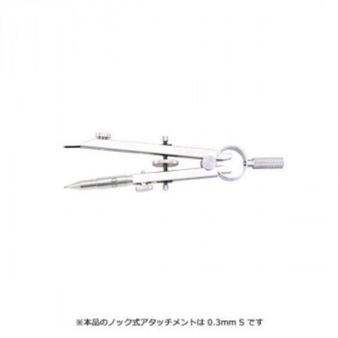 | 穂先にノック式アタッチメントSを付けたスプリングコンパスです。 ※モニターの設定などにより、実際の商品と色味の見え方が異なる場合がございます。あらかじめご了承ください。 |