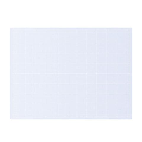 表裏面に透明、中芯に乳白色のシートを使用しているので、トレース台の光を透過することができるカッティングマットです。周囲に1cm間隔の目盛りと、5cm方眼が印刷されているので寸法切りも簡単です。 |