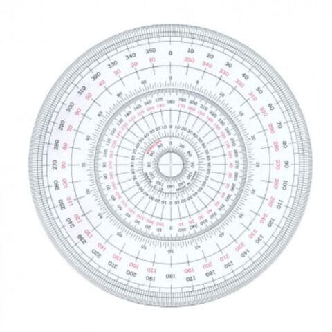 | 製図作業に便利な全円分度器の18cm型です。 ※モニターの設定などにより、実際の商品と色味の見え方が異なる場合がございます。あらかじめご了承ください。 |