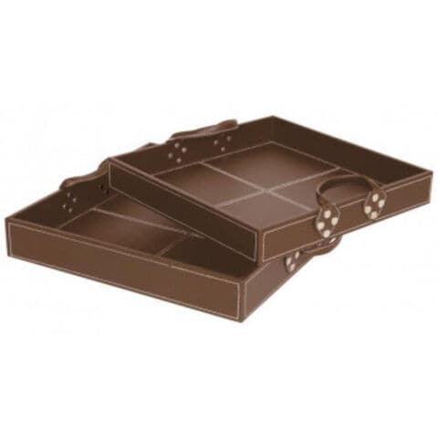 フェイクレザー トレー(BR)L・S 2個セット W380×H60×D380 40070