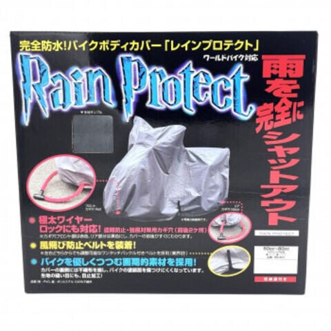 | 防水仕様のボディカバーです。内側にはバイクの塗装面を傷つけにくい不織布を使用。生地の縫い目にも目止め加工が施されており、バイクを優しく包みこみます。前後に付いた盗難防止・強風対策用カギ穴は、極太ワイヤーロックにも対応!!更に風飛び防止ベルトが付いており、バイクの左右どちらからでもベルトの調整が出来ます。 |