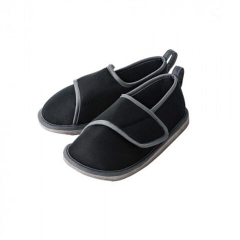 わずかな段差や滑りやすい床での転倒を予防する室内専用シューズです。履きやすく履かせやすい面ファスナー式。中敷の滑り止め加工により足のズレを予防します。底面には3か所の滑り止めがあります。
