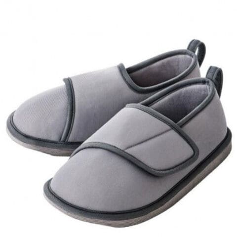 わずかな段差や滑りやすい床での転倒を予防する室内専用シューズです。履きやすく履かせやすい面ファスナー式。中敷の滑り止め加工により足のズレを予防します。底面には3か所の滑り止めがあります。