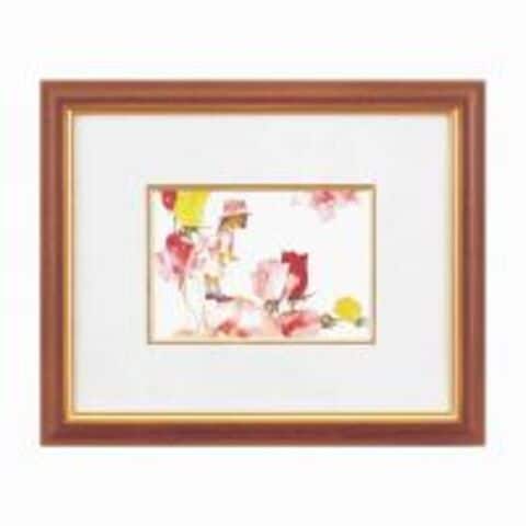 淡い色使いで優しく描かれた、ちひろの可愛らしい絵をセットしたインチ額。落ち着いた茶色に金の枠組みの豪華なフレームです。ハガキサイズ(148×105mm)の写真などと差し替えもできます。スタンド式で飾る場所を優しく彩り、また壁掛けにも使用いただけます。