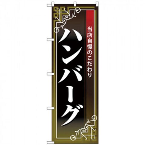 Nのぼり 26435 ハンバーグ 白字黒地赤帯