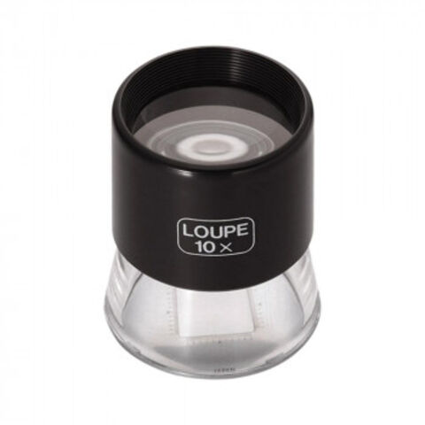 | 0.2mm目盛板が付いた、倍率10倍の卓上拡大鏡です。 ※ルーペでは絶対に太陽やレーザー光線などの強い光源を見ないでください。眼に重大な損傷を与えます。 |