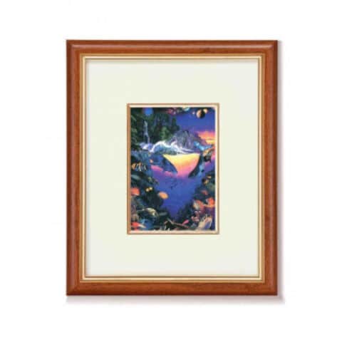 | クリスチャン・リース・ラッセンが描いた、深みのあるブルーを基調に鮮烈な色彩の調和が見るものを惹きつける絵をセットした美しい絵画額です。豪華な金モールDXマットがラッセンの絵を引き立てます。スタンド付で、壁掛けにも置き型にも出来ます。 |