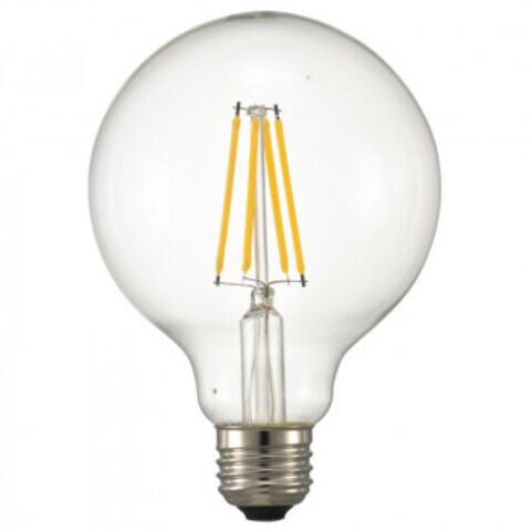| ボール電球60形相当の明るさ。フィラメントタイプできらめきが広がるLED電球です。光色は電球色で調光器にも対応します。屋内でのみ使用可能です。 |